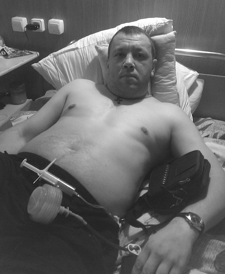 Кульове поранення та перелом верхньої частини бедра. Роздроблені кістки. Лікування ускладнюється тим, що в «апараті Єлізарова» довелося лежати 60 днів. Тепер вживлені в бедро металеві пластини для скрипленя кiсток i Микола чекає на заживлення. Миколу чекає довготривалий реабілітаційний період.