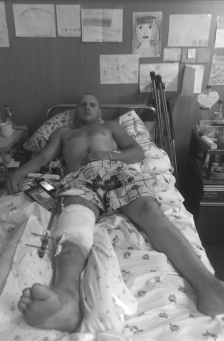 Чисельні кульові поранення ноги. Є надія зберегти ногу. Від допомоги відмовляється категорично. Втім, волонтери переконані, що допомагати йому необхідно.